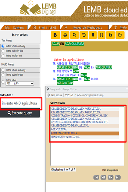 Note: LEMB Digital highlights the hits of the consulted strings, within all the authorities which satisfy the query.